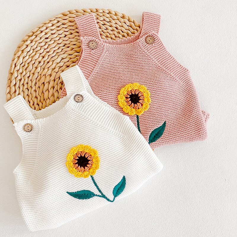 Sunflower Knitted baby Romper