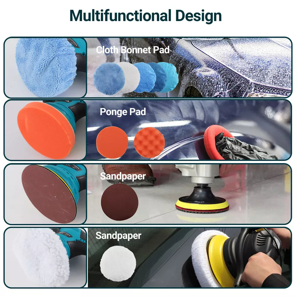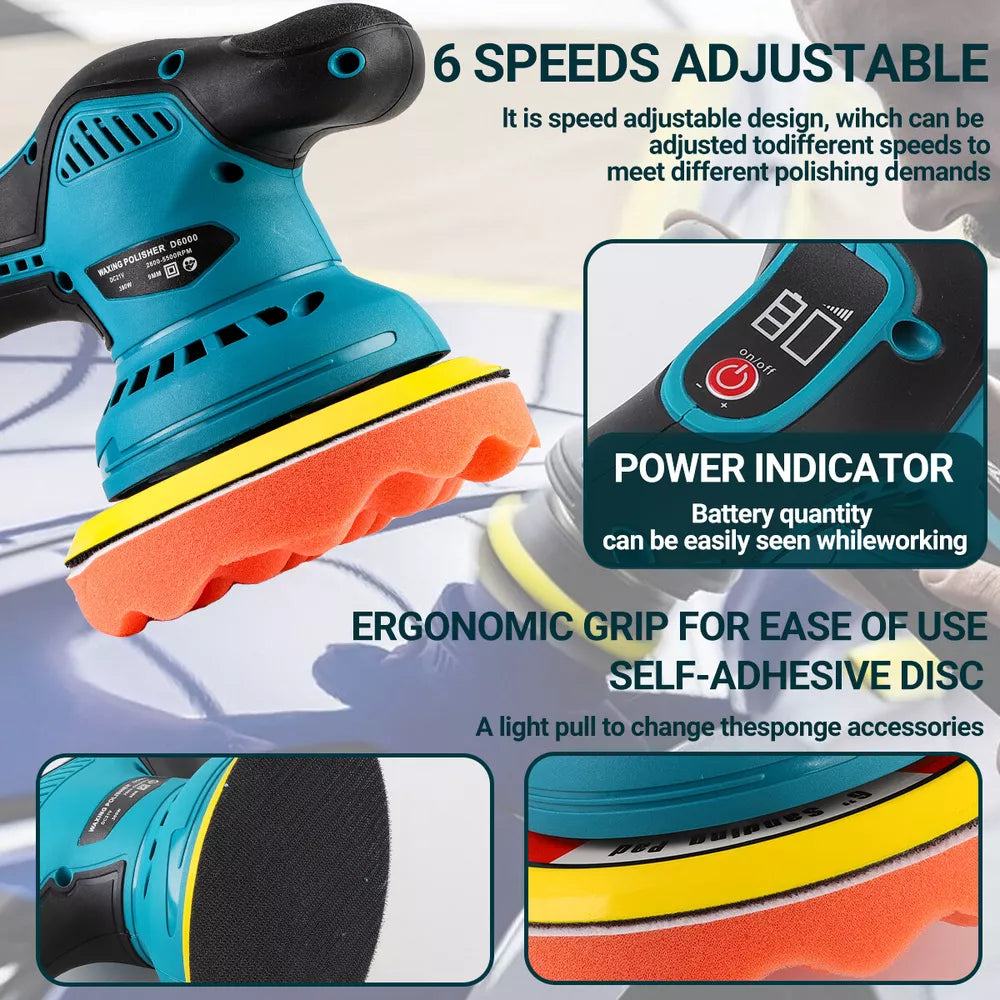 The iToolMax Cordless Car Polisher stands out with its high-powered copper brushless motor, providing more torque and efficiency. The 6-speed settings allow for versatile use, ranging from gentle waxing and buffing to intense polishing and defect removal. It includes 9 reusable and washable cleaning pads, designed to meet various polishing needs. The tool’s lightweight design and cordless operation provide easy mobility, while the 2000mAh lithium battery ensures long-lasting power for uninterrupted sessions. With its multi-functional use, this polisher isn’t just for cars but also works on furniture, floors, metal, and more.