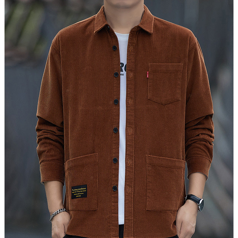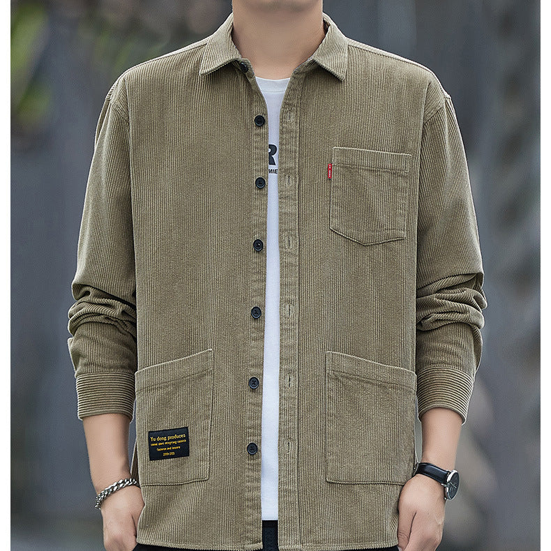 Corduroy Long-sleeved Shirt Men’s Jacket Casual Retro Work Shirt
