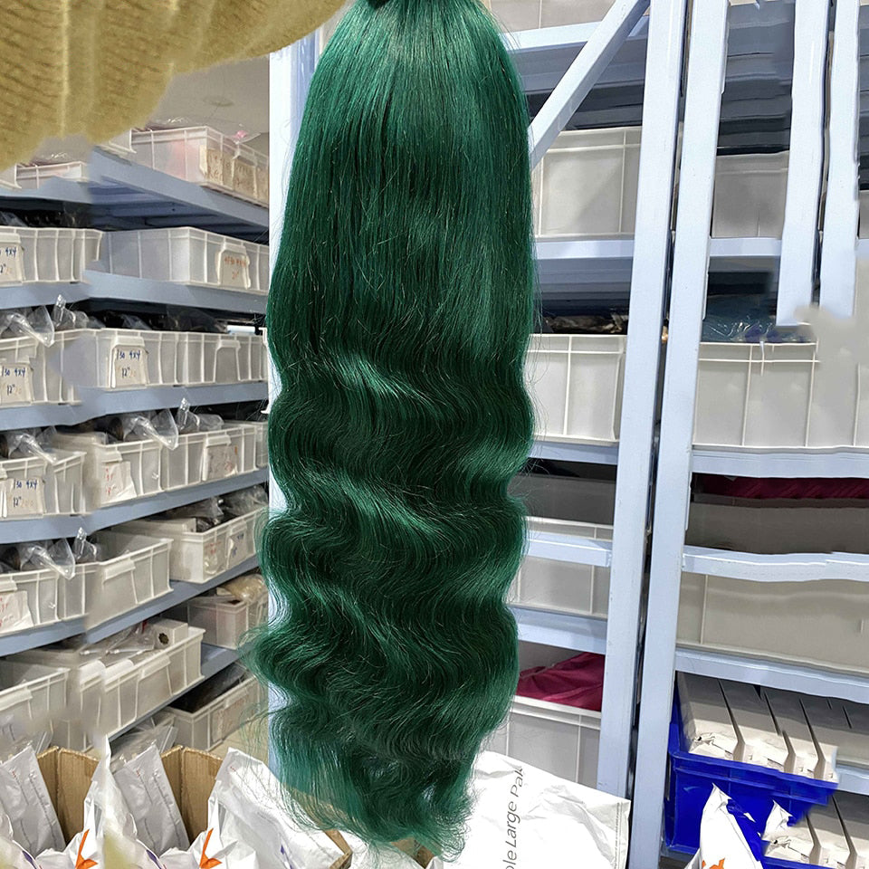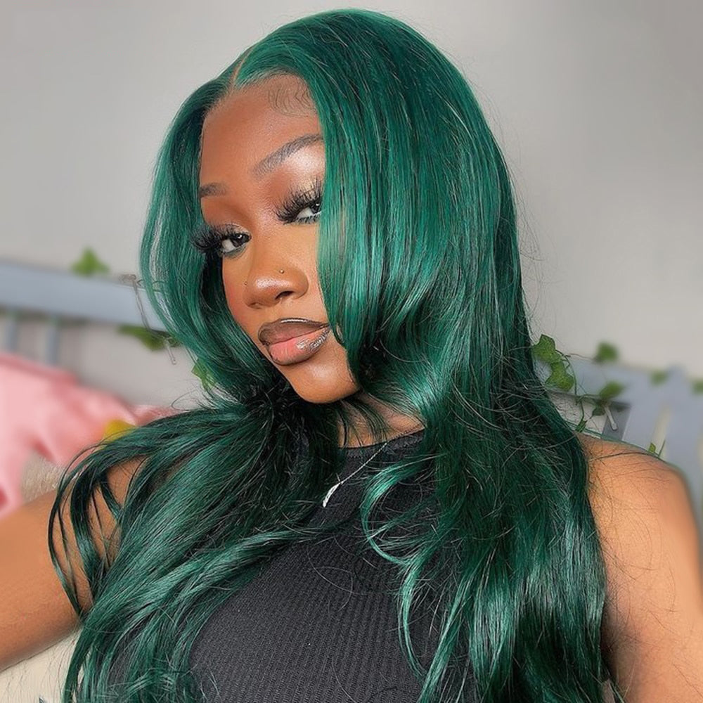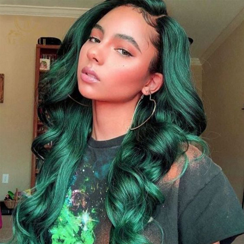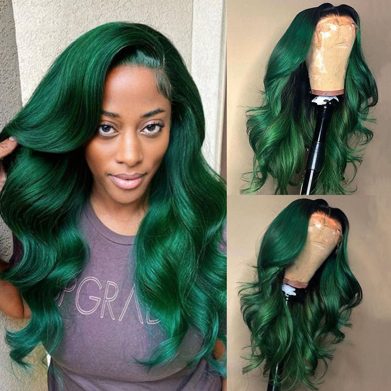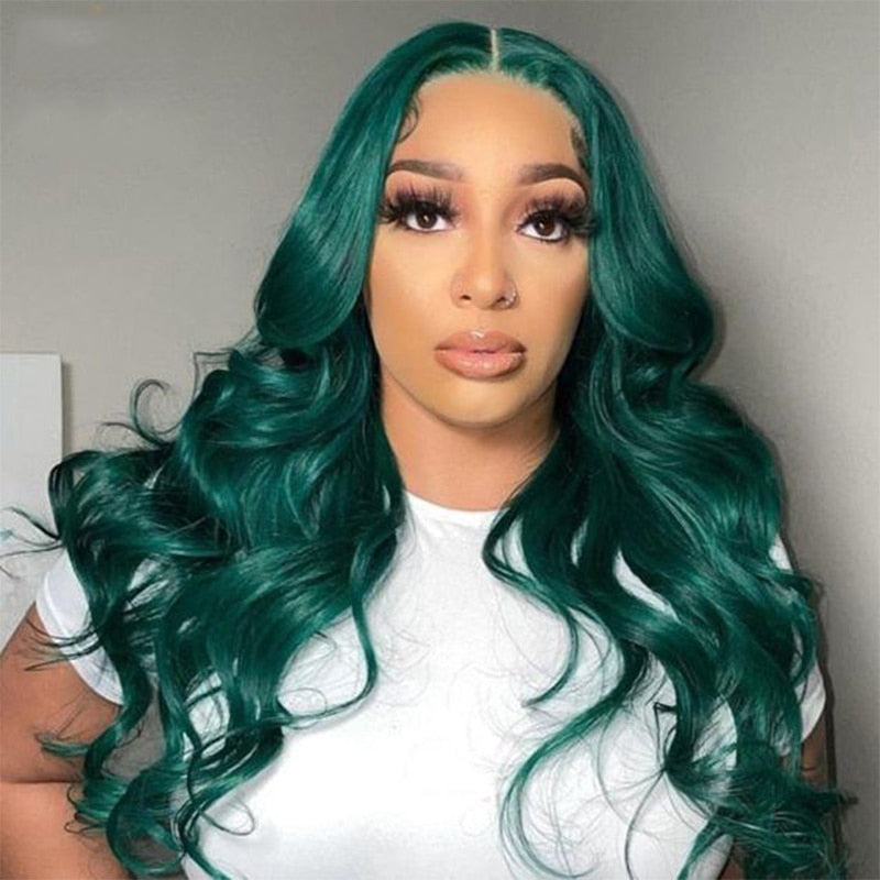 Cranberry Green Body Wave 13×4 Lace Front Human Wigs With Baby Hair 180% Density