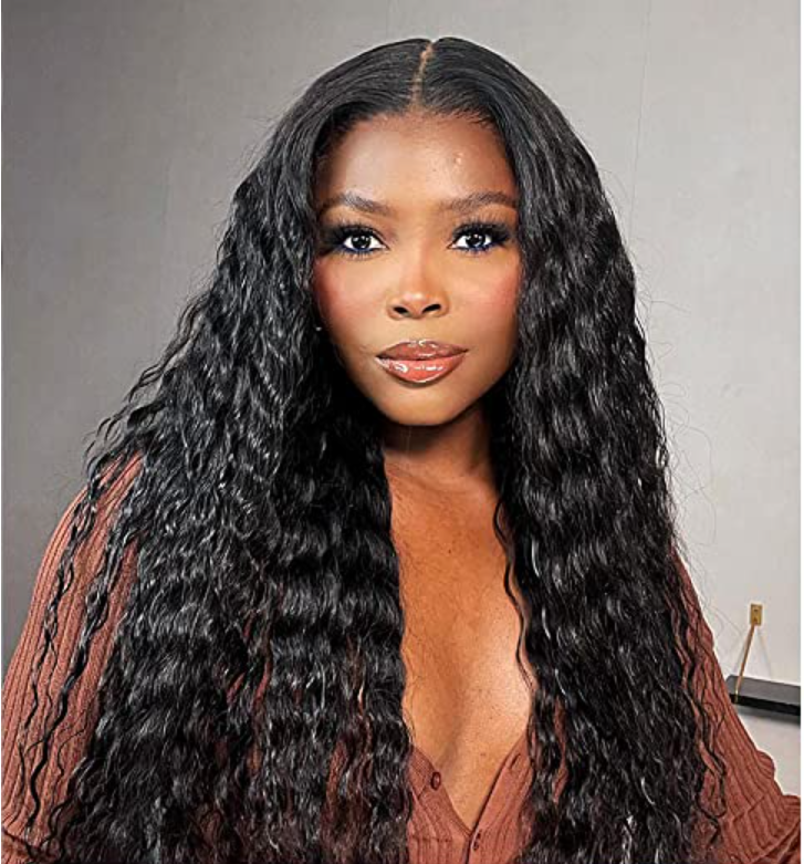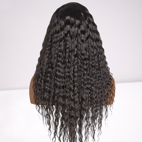 Cranberry Natural Black Flowy Bohemian Curly 13×4 Frontal Lace C Part Long Wig 100% Human Hair