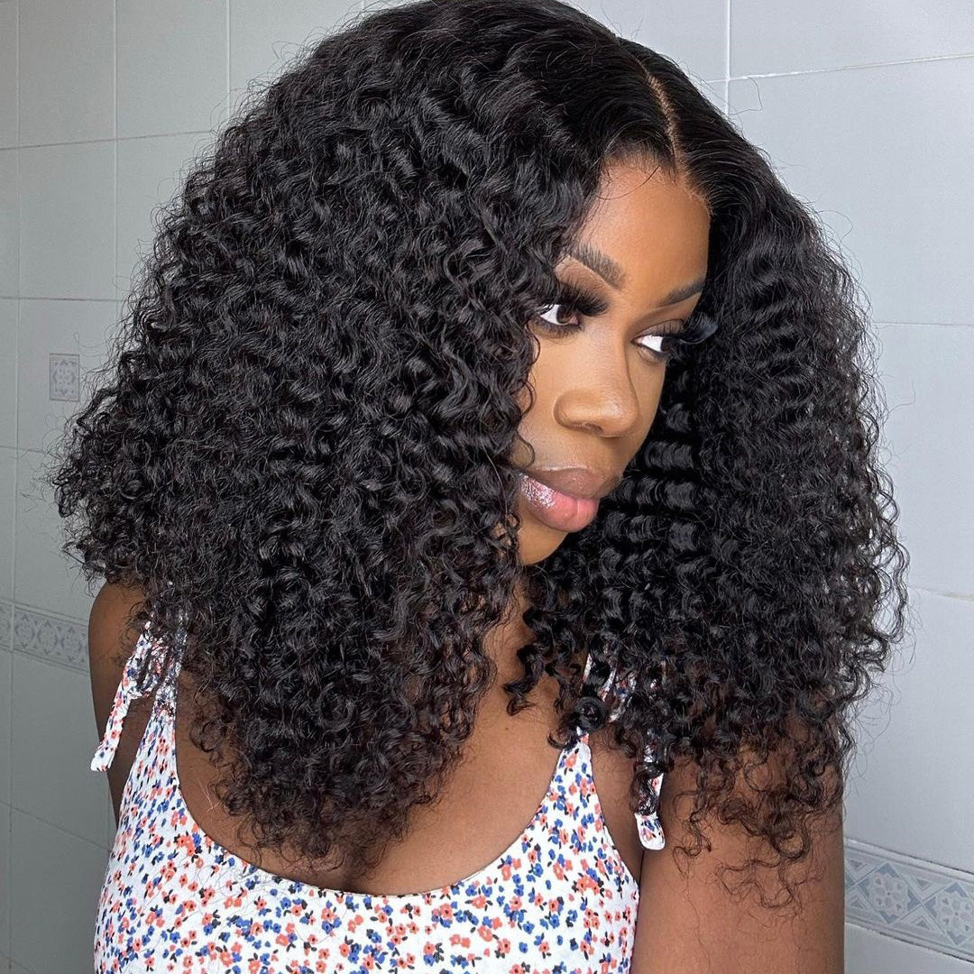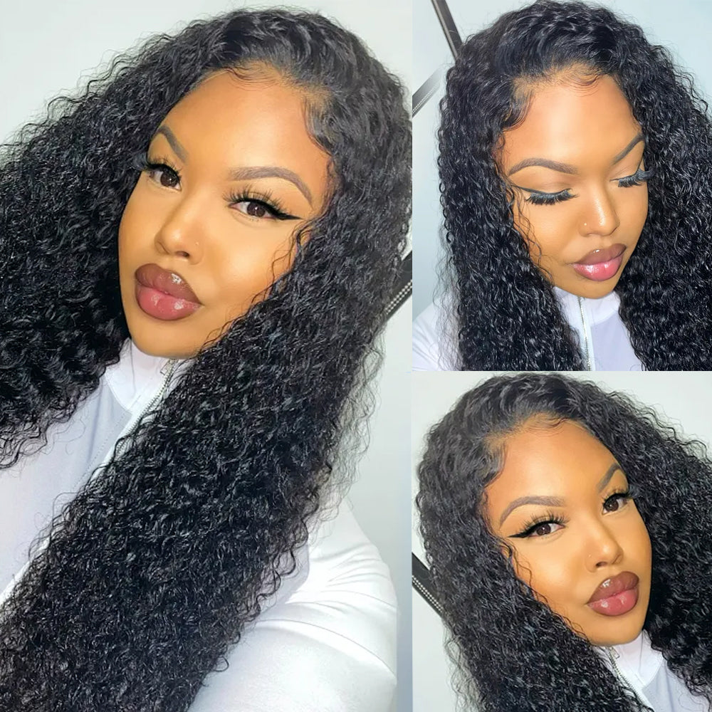 Cranberry 12A Real 4X4 HD /Transparent Lace Closure Curly Wave Glueless Long Wig