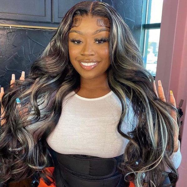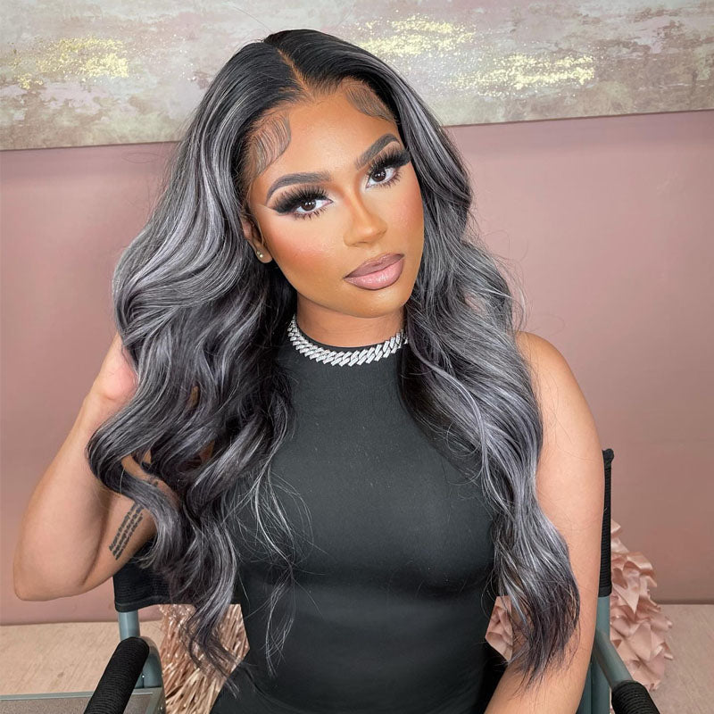 Cranberry Sliver Gray Black Highlight Straight Wig Human Hair Wigs HD 13X4 Lace Frontal Wig