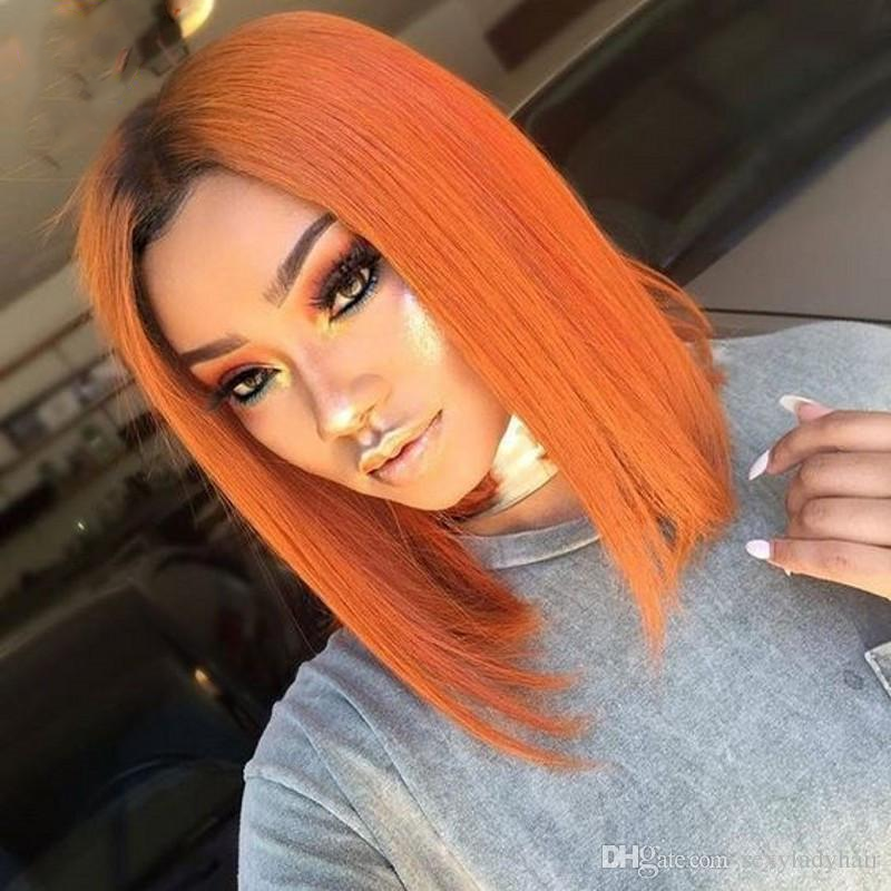 Cranberry Straight 1B/Orange Short Bob 13×4 Lace Front Wig For Black Women Pre Plucked