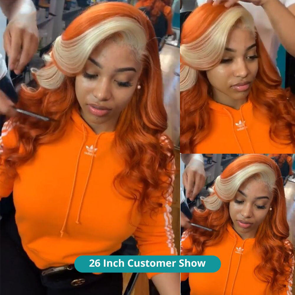Cranberry 13x6 Ginger Lace Front Wig Pre Plucked Orange Body Wave Frontal Wig
