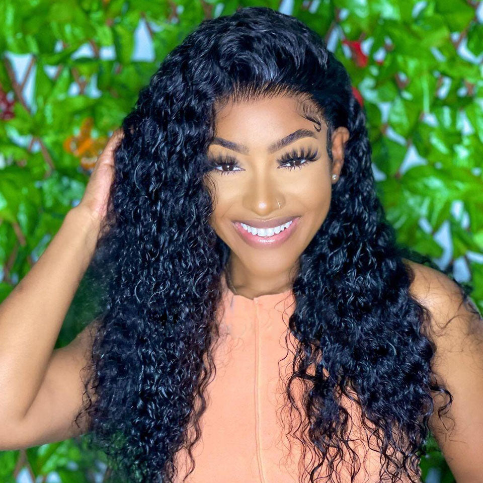 Cranberry 12A Loose Deep Wave Real 13X4 HD /Transparent Long Glueless Natural Black Wig