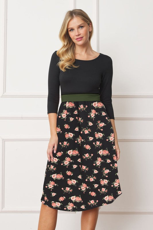 Step into style and comfort with our gorgeous Curved Hem Band Midi Dress!