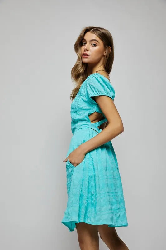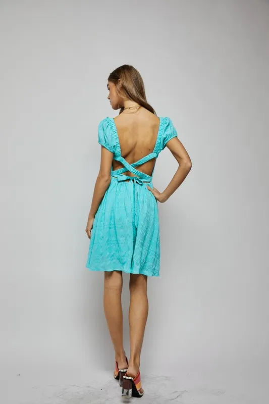 The crossed back short sleeve dress with pockets is a versatile and practical option for your wardrobe. The crossed back detail adds a touch of interest and style to the dress. The short sleeves offer both coverage and breathability. The addition of pockets provides functionality and convenience. This dress is perfect for a casual day out, offering comfort and ease of movement. Pair it with sneakers for a laid-back look or dress it up with sandals for a more polished ensemble.