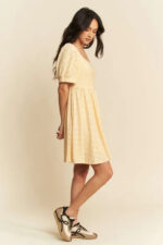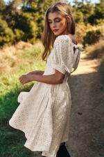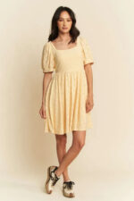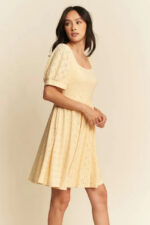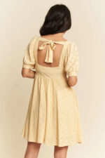 The eyelet baby doll romantic square neckline dress is a charming and feminine choice for a romantic occasion. The eyelet detailing adds a delicate and intricate touch to the dress. The baby doll silhouette creates a playful and flattering look, perfect for dancing or strolling through a garden. The square neckline adds a touch of elegance and showcases the collarbones beautifully. This dress is ideal for a date night or a special event, exuding romance and grace. Pair it with strappy heels and dainty jewelry for a dreamy and whimsical ensemble.