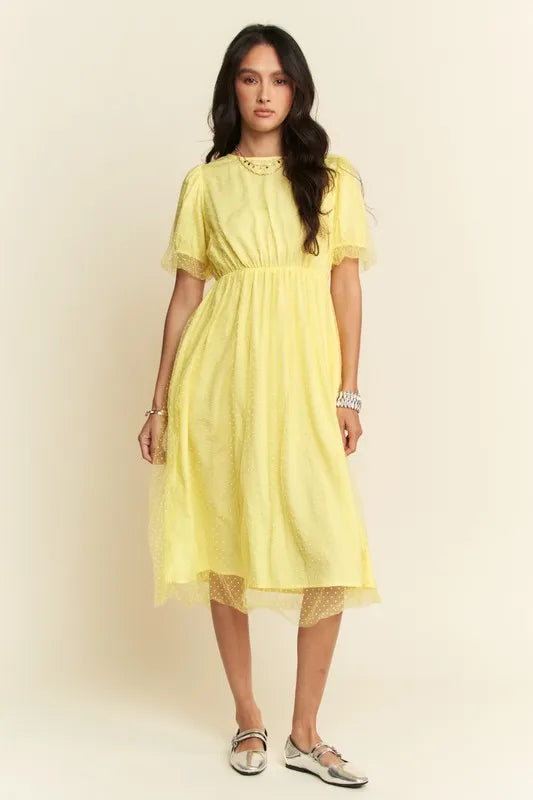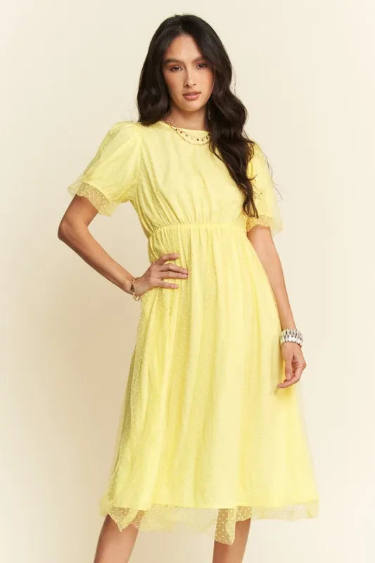 Mesh Puff Short Sleeve Midi Dress