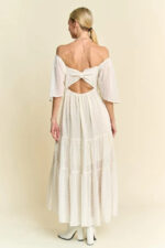 Be the first to review “Swiss Dotted Ruched Ruffle Open Back Midi Dress”