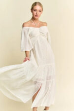 The Swiss Dotted Ruched Ruffle Open Back Midi Dress is a romantic and chic piece for a special event. The swiss dotted pattern adds a whimsical and delicate touch to the dress. The ruched detailing creates a figure-flattering silhouette. The ruffle accents add a playful and feminine flair. The open…