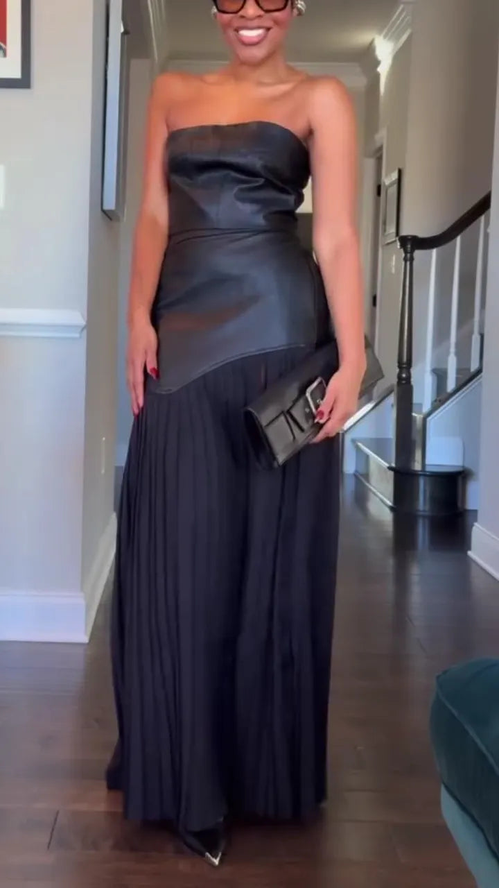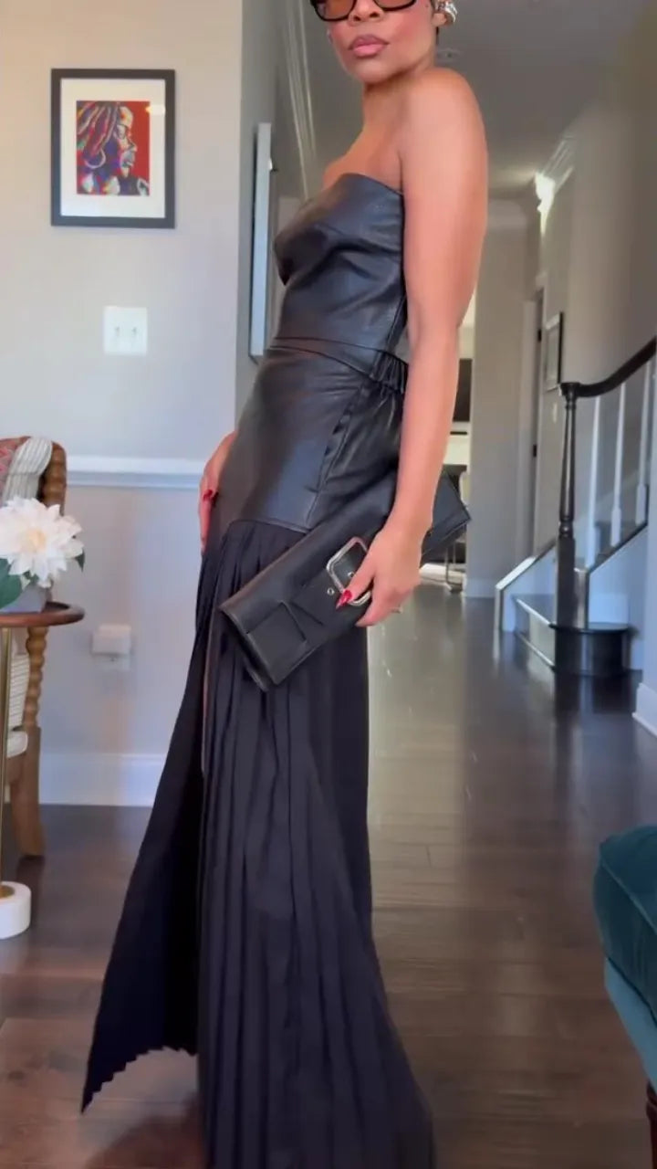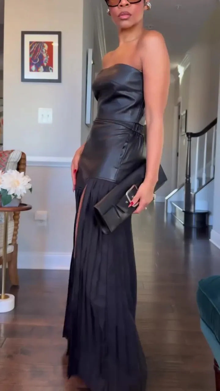 The Deka™ set combines edgy sophistication with feminine elegance. Featuring a sleeveless leather top and a pleated skirt, this set is perfect for the woman who wants to make a bold statement. The leather detail at the waistband adds a modern twist, while the elastic waist ensures a comfortable and flattering fit. Whether you’re dressing up for a night out or attending a stylish event, Deka™ ensures you look effortlessly chic.