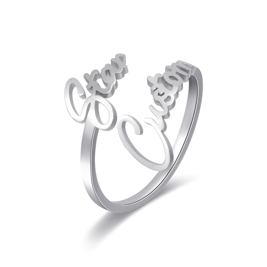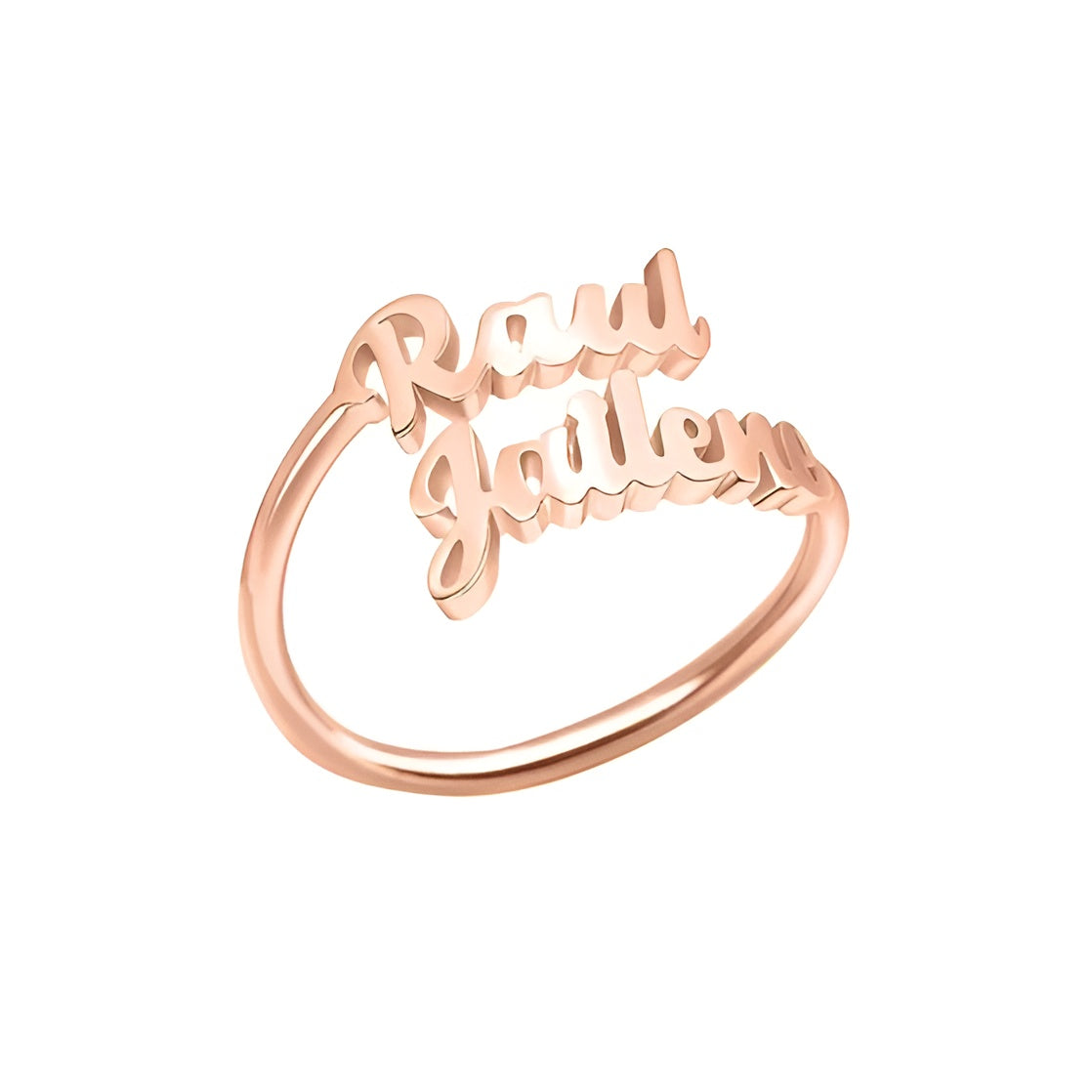 Our Personalized Two Name Ring features an open design that adjusts to fit any finger comfortably.