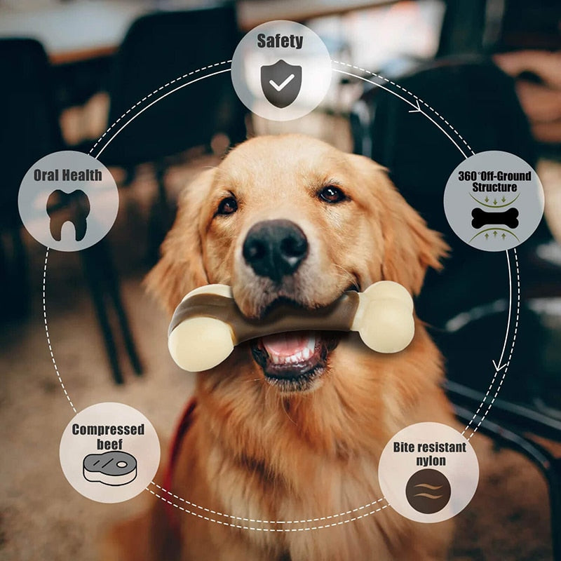 BONE-SHAPED DESIGN: Real-looking bone shape makes it easy for your pet to recognize, creates a positive association with toys for dogs, and reduces their anxiety and boredom. fun and engaging design – created with four chewing ends that make it easy for dogs to hold and chew