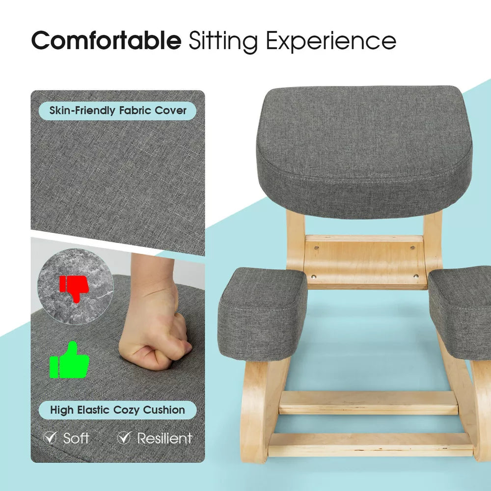 Ergonomic Wooden Kneeling Chair for Improved Posture and Comfort
