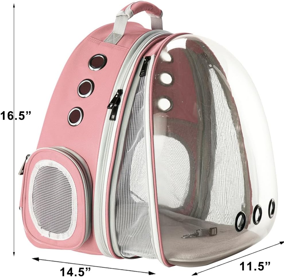 This cat backpack carrier increases your pet’s visual space via front transparent hard shell, the front extension is zip up to have extra 4 inches larger room and better ventilation all the time.