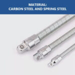The Flexible Socket Extension Bar is engineered for versatility and reliability. Its flexible spring shafts bend into various positions to allow torque application from different angles, making it ideal for tight spots. Crafted from heat-treated alloy steel, it resists corrosion and offers long-lasting strength. The chrome-plated drive ends and spring-loaded detent balls ensure your sockets stay securely in place, preventing any slipping. Lightweight and compact, it’s easy to store in your toolbox and take with you on any job.