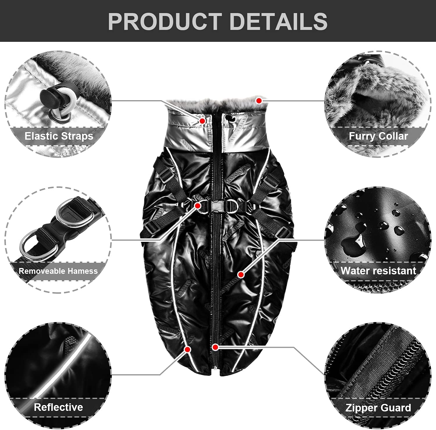 • Zipper design for easy on&off – Our dog coat is equipped with smooth zippers, easy to put on and take off. The protective pain-free zipper Guard on the back prevents dog fur and skin from being injured.