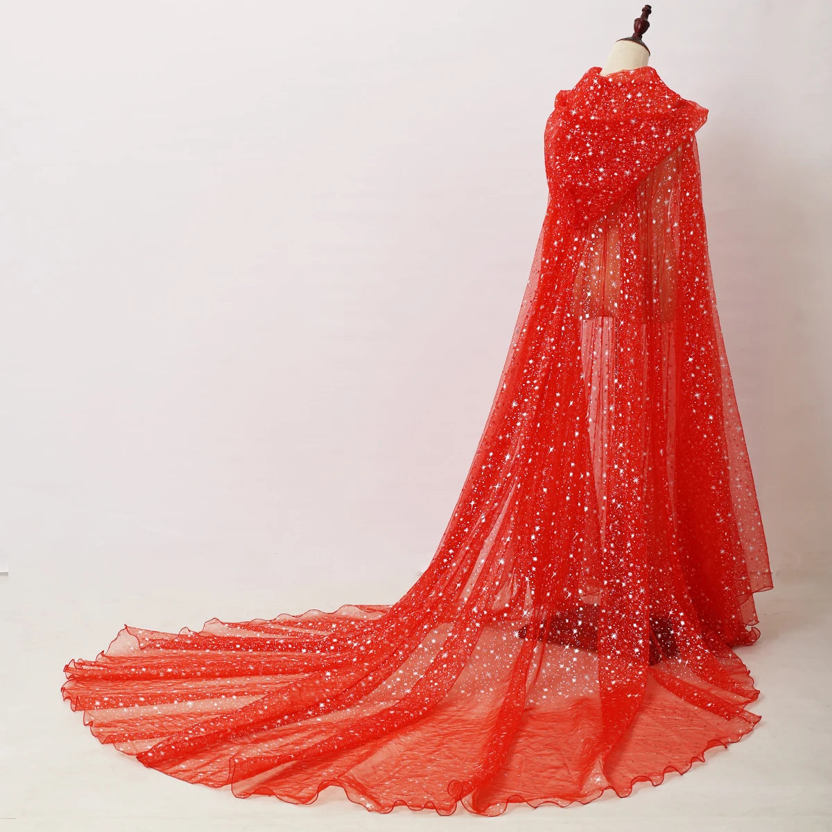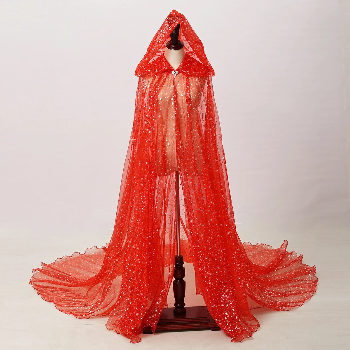 Official Gothic Punk Cloak Soft Tulle Capes with Hood Cape Halloween Costume for Women