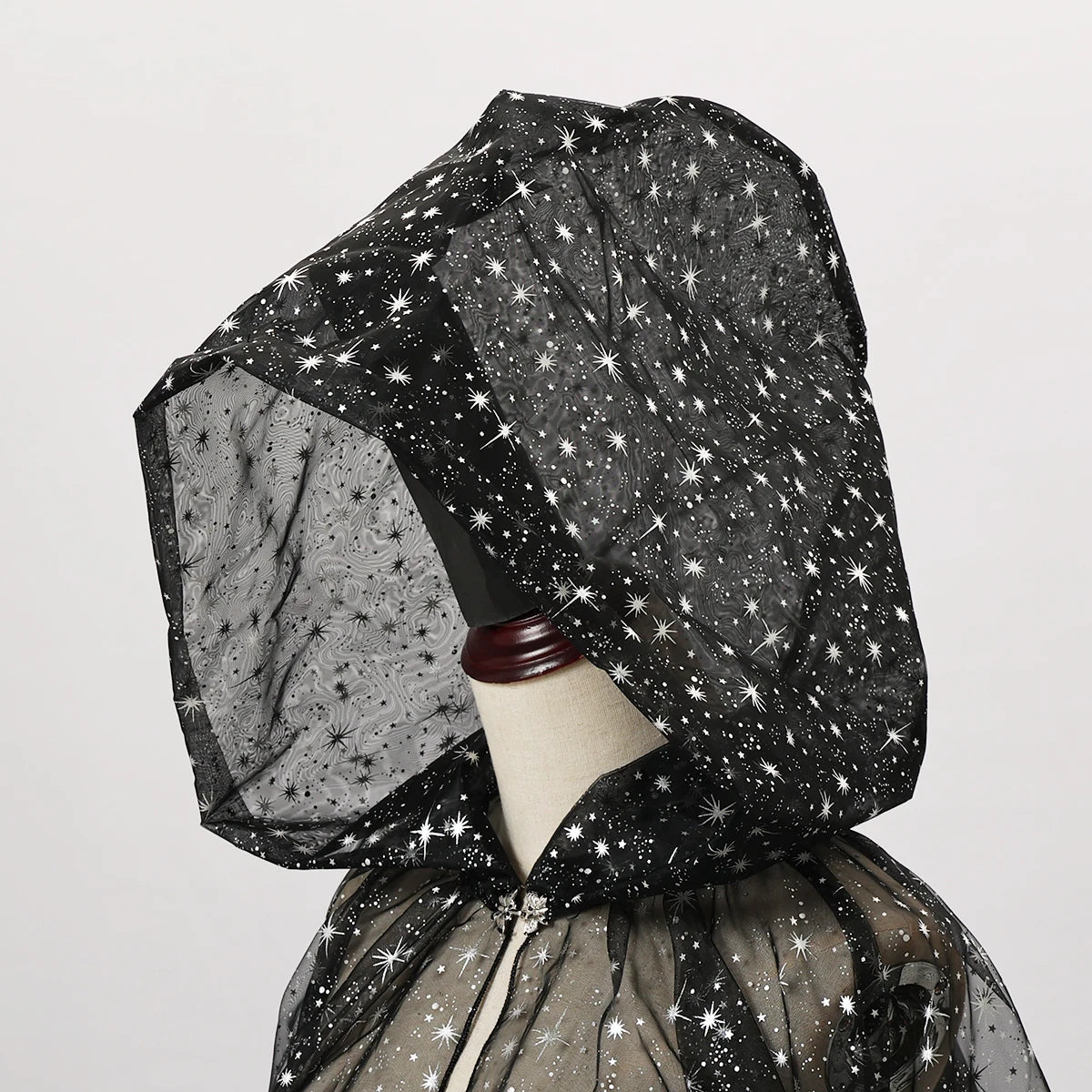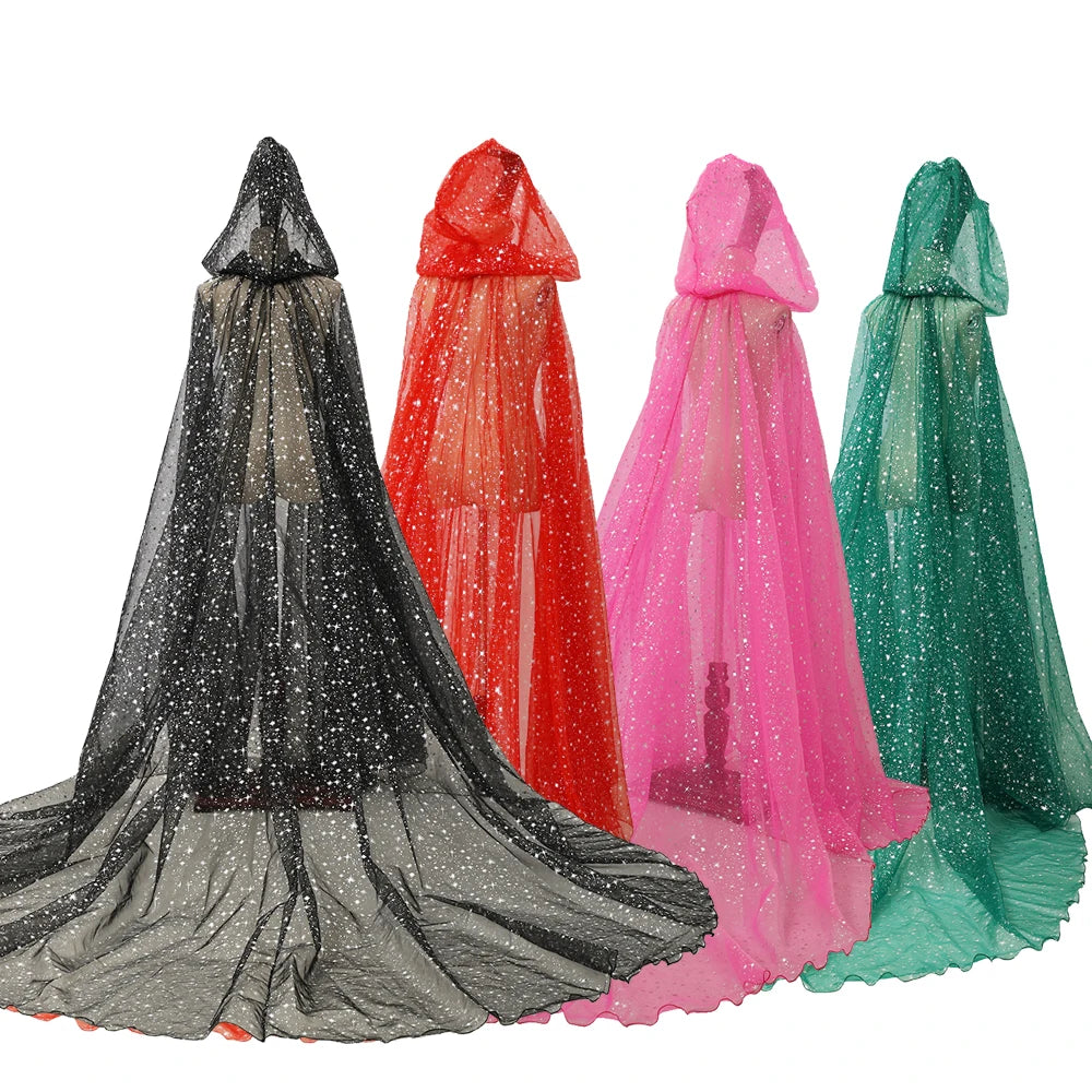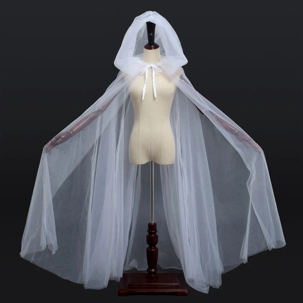 Gothic Punk Cloak Soft Tulle Capes with Hood Cape Halloween Costume for Women
