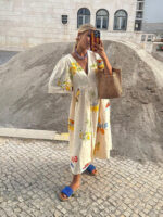 Made from soft, breathable fabric, this flowy summer dress keeps you cool and comfortable even on the warmest days. The gorgeous beach-inspired print adds a touch of tropical charm, while the long, relaxed fit creates a flattering and effortlessly stylish look for any occasion.