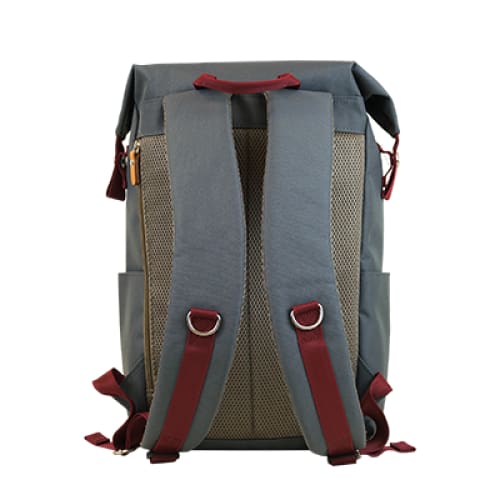 – Padded air mesh rear panel and shoulder straps with D-rings.