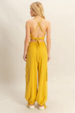 The crop top and cargo pants set is a trendy and versatile outfit option. The crop top adds a touch of style and flair, while the cargo pants offer a casual and utilitarian vibe. This set is perfect for creating a coordinated and trendy look that is both comfortable and fashion-forward.