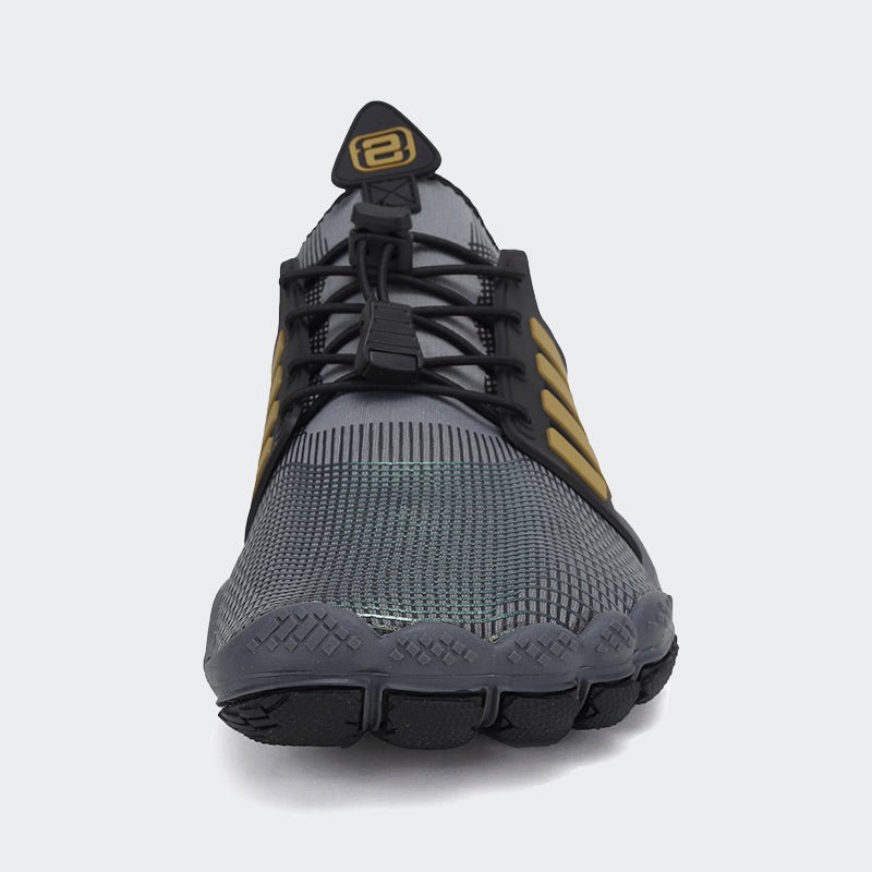 - Der Zehenbereich ist verbreitert. um die Griffigkeit zu verbessern. Der Zehenbereich des Barfußlaufschuhs ist breiter als der eines herkömmlichen Sportschuhs und verleiht deinen Füssen verbesserte Griffigkeit.