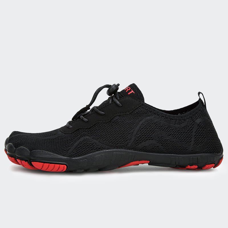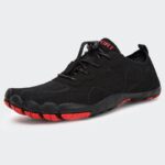 - Der Zehenbereich ist verbreitert. um die Griffigkeit zu verbessern. Der Zehenbereich des Barfußlaufschuhs ist breiter als der eines herkömmlichen Sportschuhs und verleiht deinen Füssen verbesserte Griffigkeit.