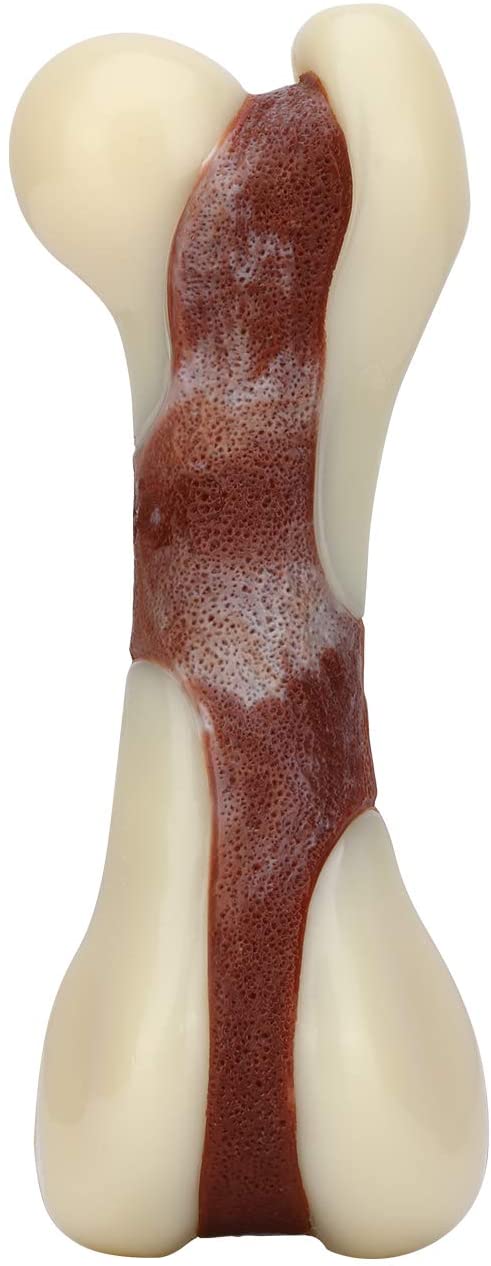 Made of durable nylon, this bone-shaped toy promotes positive association training and is safe for dogs of all sizes.