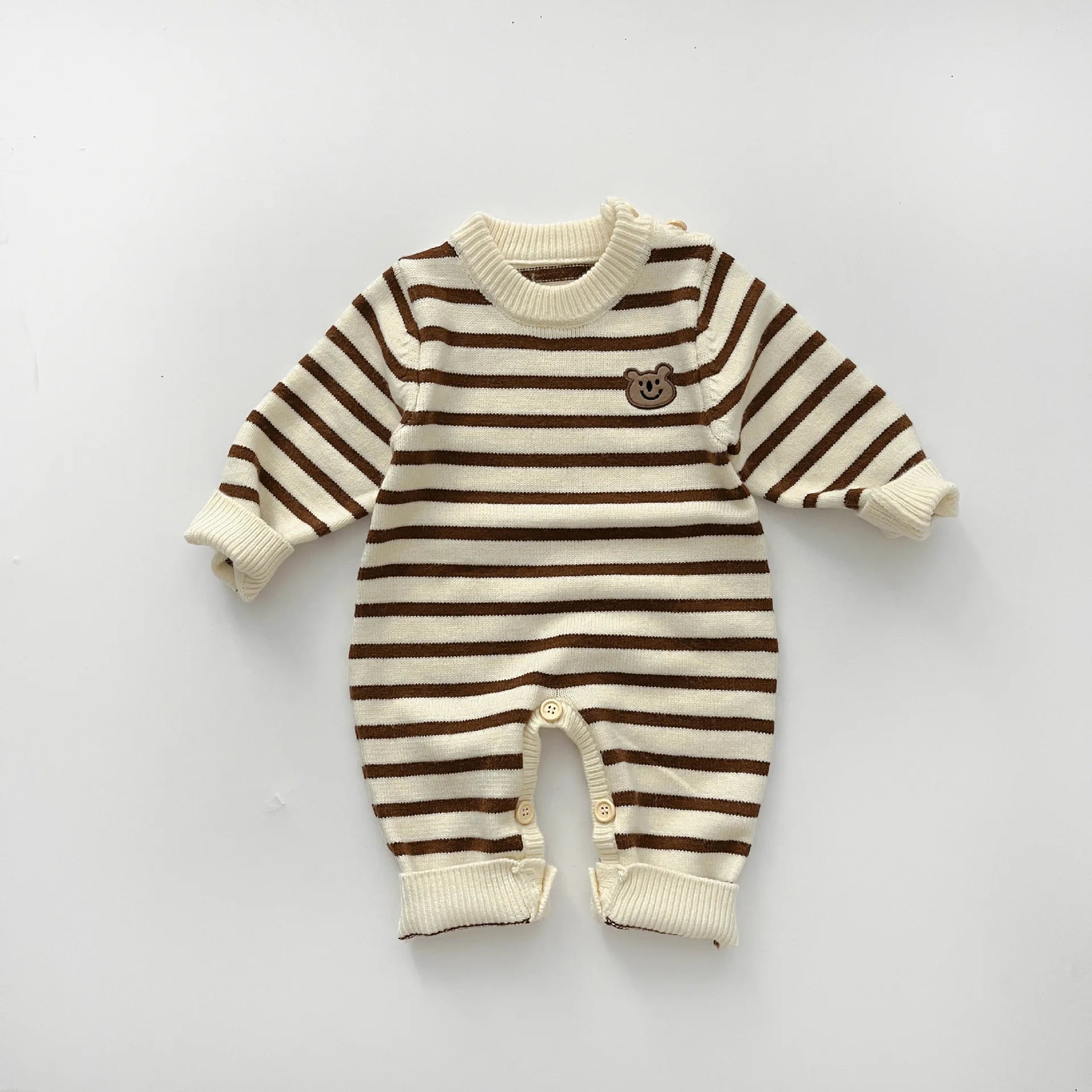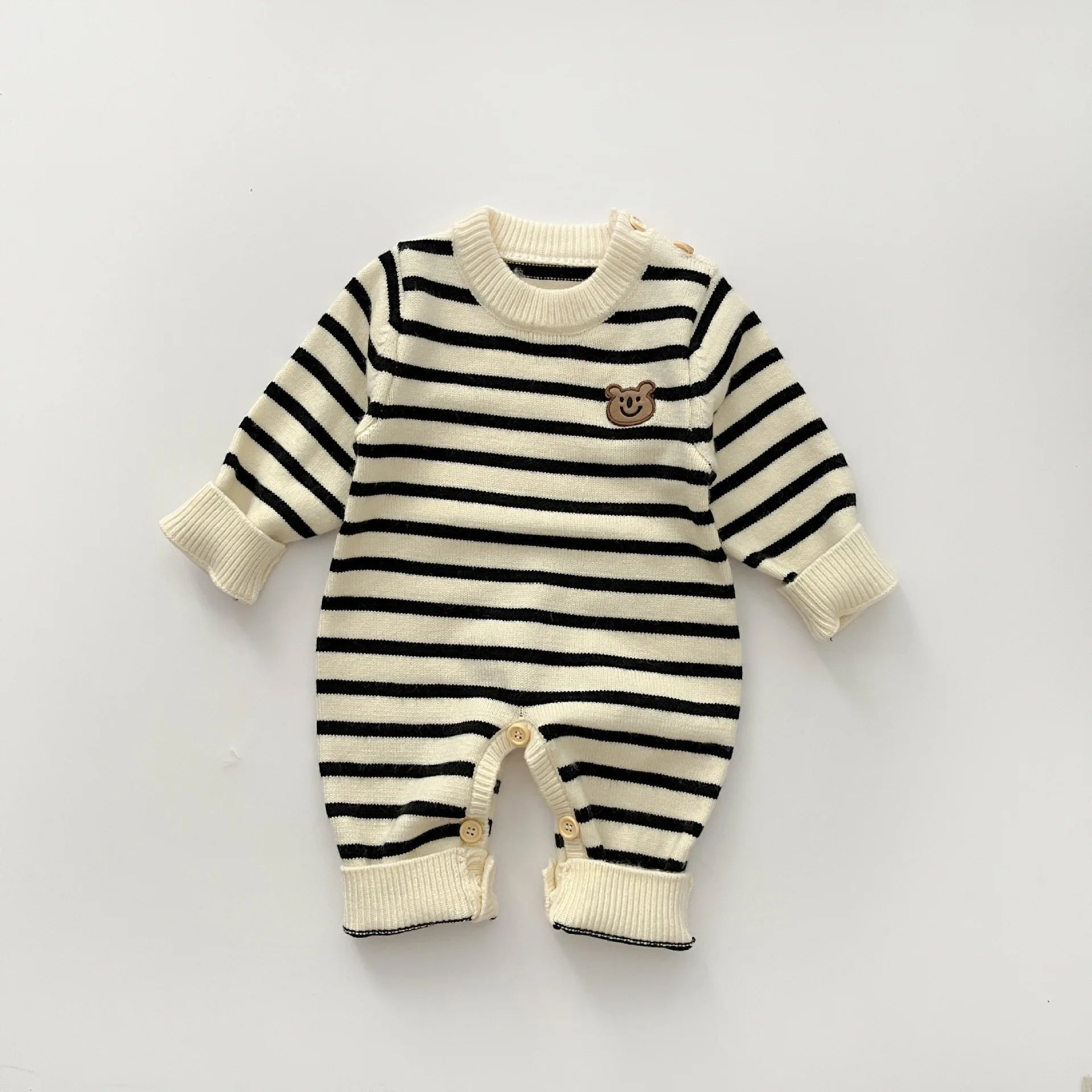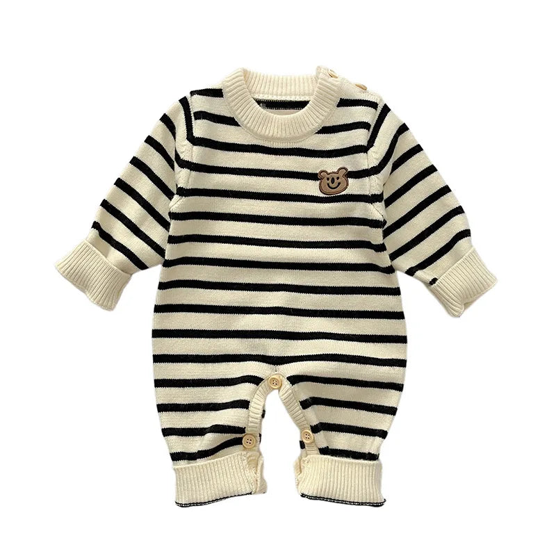 Wrap your little one in warmth and style with our Spring and Autumn Nordic Edition Knitted Jumpsuit. This charming outfit is designed with soft, breathable fabric, making it perfect for the cooler seasons. The classic striped pattern is complemented by an adorable embroidered teddy bear, adding a touch of playful charm. Ideal for both casual outings and special occasions, this jumpsuit ensures your baby stays comfortable and fashionable all day long. Give your toddler the perfect blend of comfort and cuteness with this must-have piece!