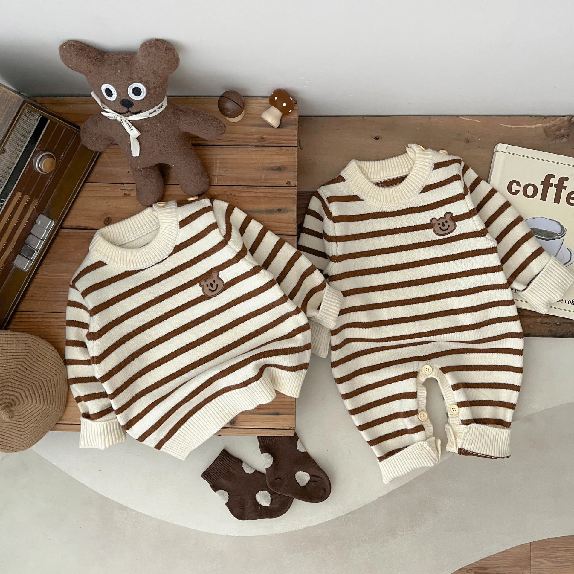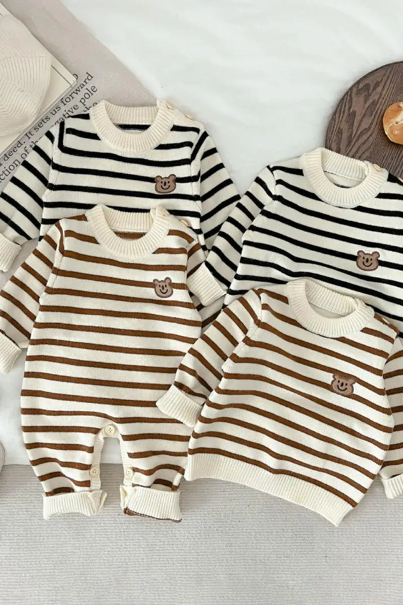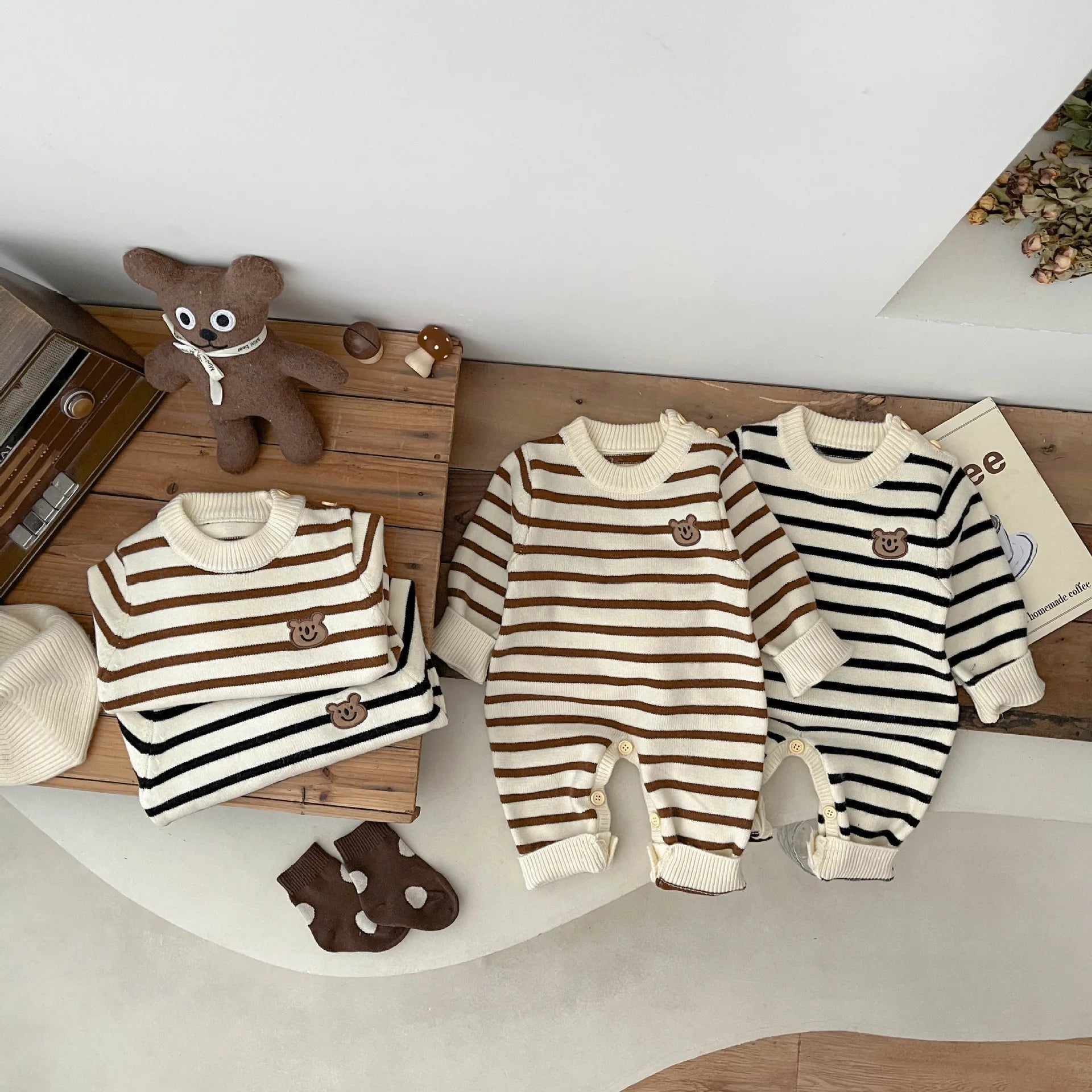Wrap your little one in warmth and style with our Spring and Autumn Nordic Edition Knitted Jumpsuit. This charming outfit is designed with soft, breathable fabric, making it perfect for the cooler seasons. The classic striped pattern is complemented by an adorable embroidered teddy bear, adding a touch of playful charm. Ideal for both casual outings and special occasions, this jumpsuit ensures your baby stays comfortable and fashionable all day long. Give your toddler the perfect blend of comfort and cuteness with this must-have piece!