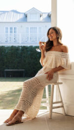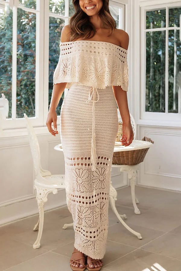 Indulge in effortless elegance with our Knit Crochet Texture Cutout Lace-Up Maxi Dress With Shawl . Perfect for any occasion, this dress exudes sophistication and style.