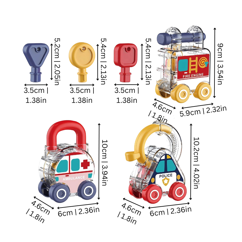 Whether it’s at home or in the classroom, this Montessori-inspired toy turns simple play into meaningful development. Kids match the keys to the right shape and unlock fun emergency vehicles—like a fire truck, ambulance, or police car. It’s a hands-on way to boost confidence and get those little minds working. You’ll love seeing them light up when they find the right key all by themselves.