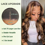 Item: Klaiyi Pre-Cut Glueless Wig Wear Go Highlight Blonde Body Wave Wig Human Hair Hair Material:inches100% Virgin Human Hair Wig, Can be Dyed and Ironed by your favor Hair Color: 412 Honey Blonde Piano Highlight Color  Hair Length:inches14~24 inch is available, Very Soft, Healthy and thick Lace Wig Type: 6×4.75 Pre-Cut…