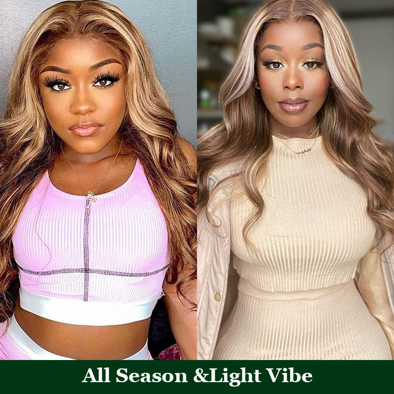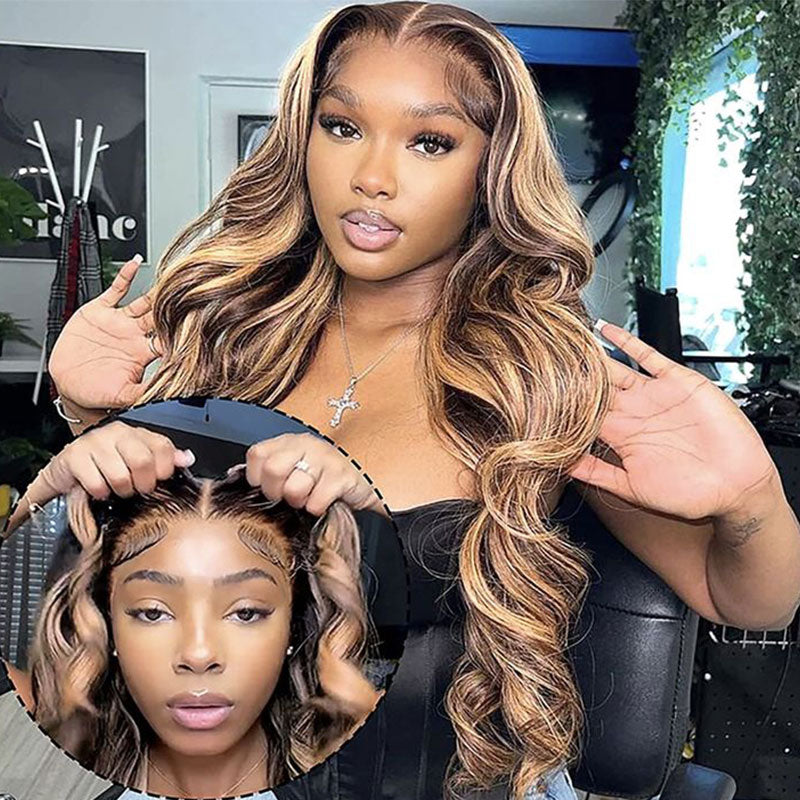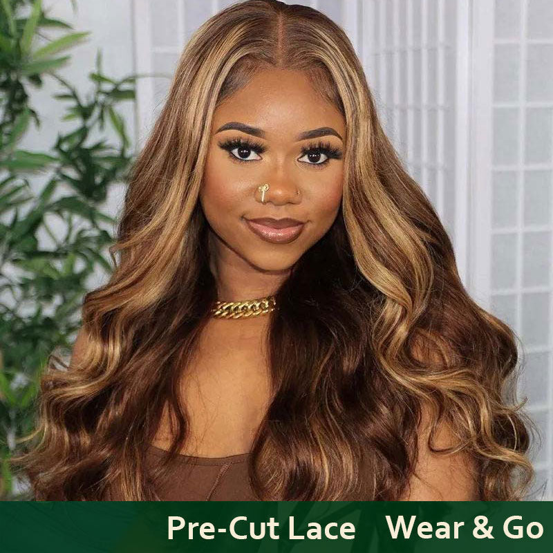 Klaiyi Pre-Cut Glueless Wig Wear Go Highlight Blonde Body Wave Wig Human Hair
