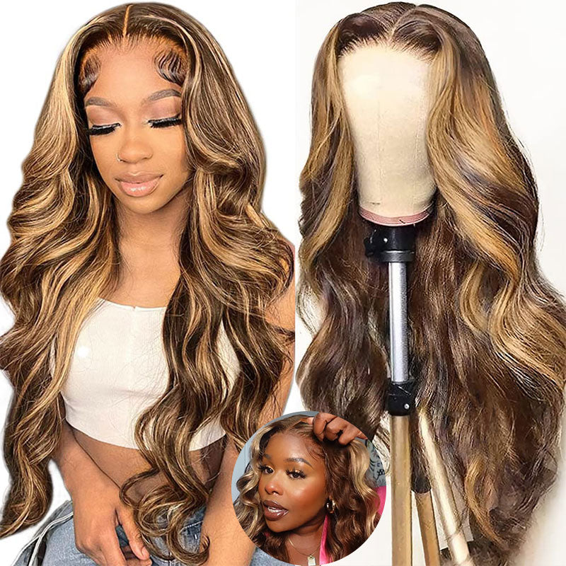 Klaiyi Pre-Cut Glueless Wig Wear Go Highlight Blonde Body Wave Wig Human Hair - onlinemegasale.com
