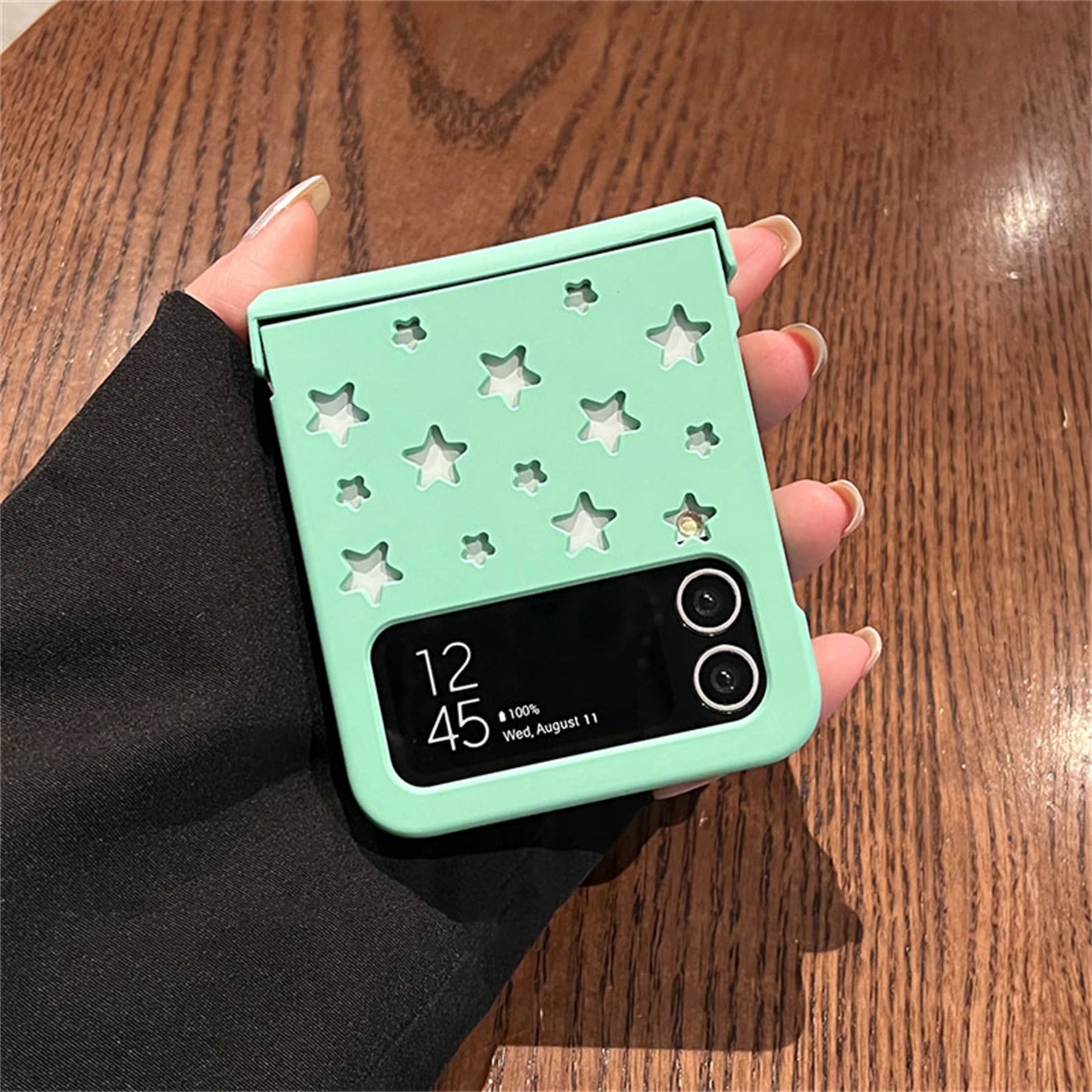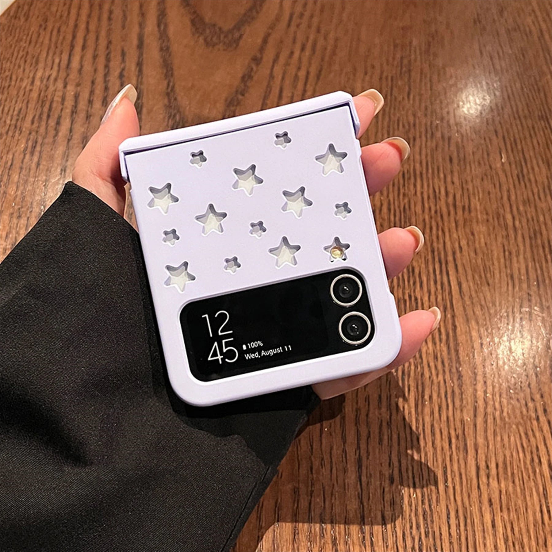 Introducing the latest trendsetter in smartphone protection, the Korean Style Hollow Out Stars Phone Case for Samsung Galaxy Z Flip 5, Z Flip 4, and Z Flip 3. This case combines a sleek, ultra-lightweight design with robust, durable construction, making it ideal for daily use. The eye-catching hollow out stars design adds a touch of elegance and uniqueness, setting your device apart from the rest.