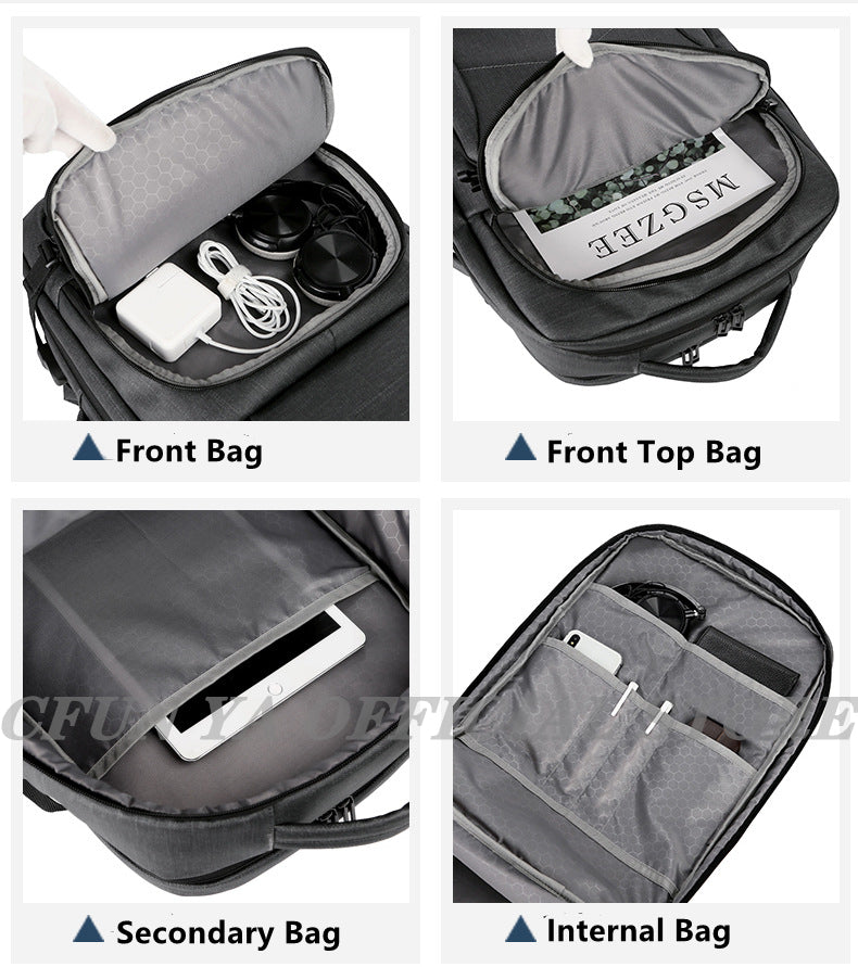 Main Material: Oxford Lining Material: polyesterGender: Unisex Backpacks Type: SoftbackInterior: Interior Slot Pocket Interior: Interior CompartmentInterior: Computer Interlayer Handle/Strap Type: Soft HandleItem Type: Backpacks Decoration: NONEClosure Type: Zipper Rain Cover: YesExterior: Solid Bag Carrying System: Physiological Curve Back