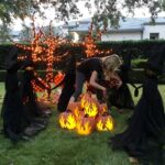 đ»Covered in wispy fabric, these witches get staked into the ground 24″ apart. Connected as if they are holding hands, passersby will wonder what kind of spell they are conjuring up.