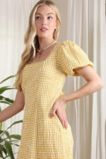The perfect blend of style and comfort, this charming gingham dress will make you the star of every outing. 👗 Puff Sleeves Delight: Enjoy the playful and stylish puff sleeves, adding volume and elegance to your ensemble. 🌼 Classic Gingham Pattern: The eye-catching yellow gingham design brings a fresh, vibrant…