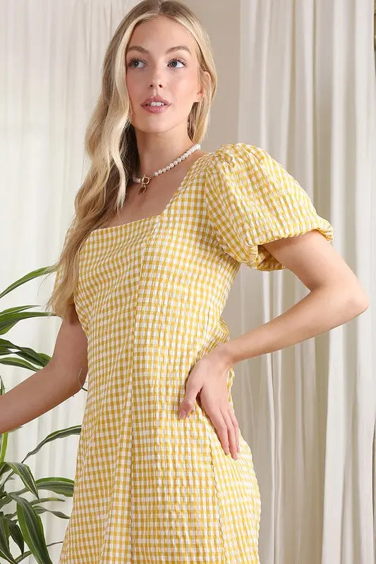 The perfect blend of style and comfort, this charming gingham dress will make you the star of every outing.