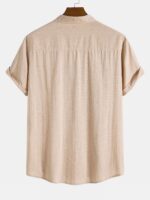 Linen Look Cotton Blend Stand Collar Shirt