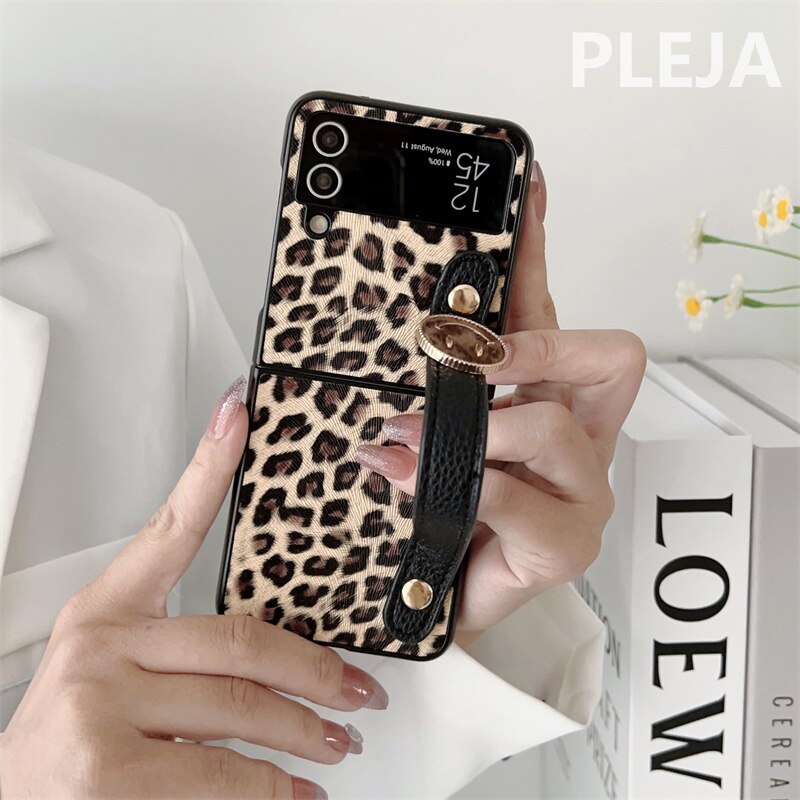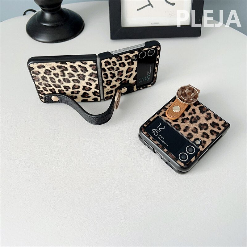 Luxury Leopard Print Wrist Strap Leather Case For Samsung Galaxy Z Flip 4 & 3 - onlinemegasale.comLuxury Leopard Print Wrist Strap Leather Case For Samsung Galaxy Z Flip 4 & 3 - onlinemegasale.com