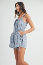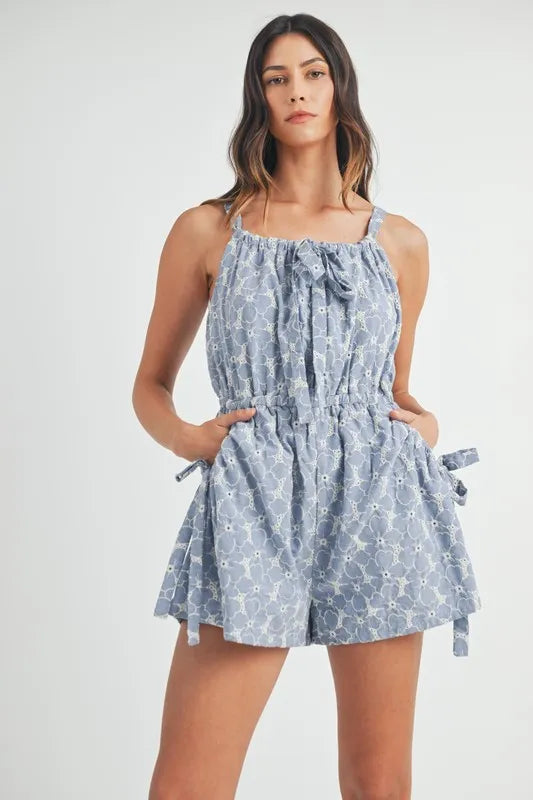 This floral embroidered button-down romper is a charming and stylish piece for the summer season. The floral embroidery adds a delicate and feminine touch to the romper, creating a bohemian and trendy look. The button-down front offers versatility and ease of wear, while the romper style provides a comfortable and effortless outfit option. Perfect for a day out in the sun or a casual brunch with friends, this romper is sure to make you stand out with its fashionable design.