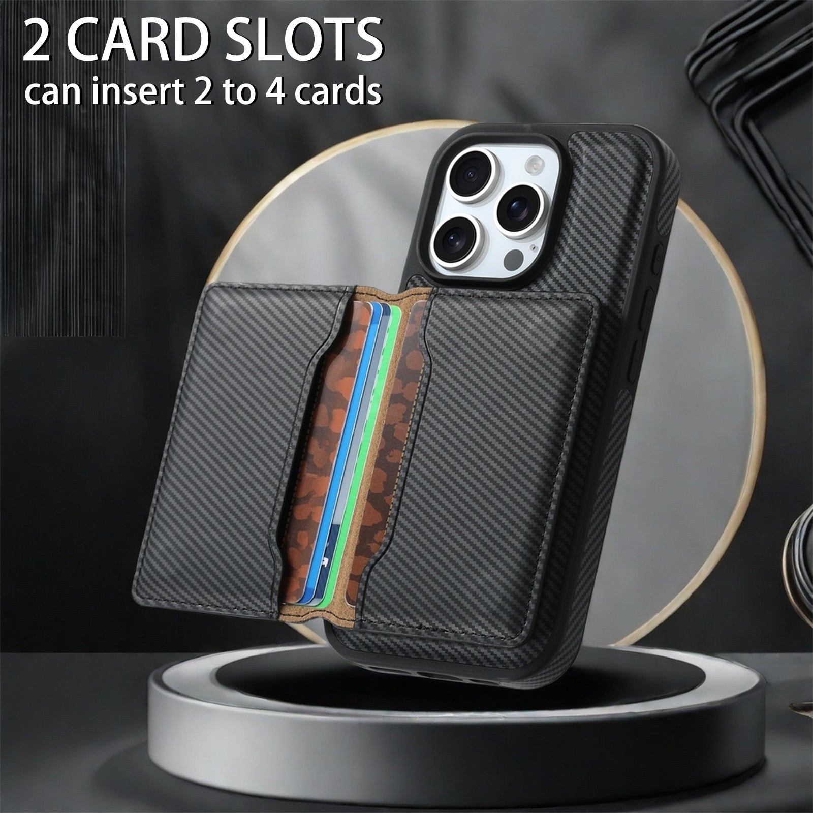 Magnetic Card Holder Carbon Fiber Shockproof iPhone Case