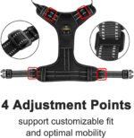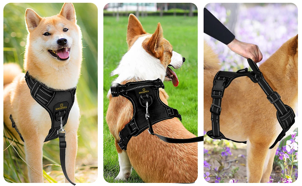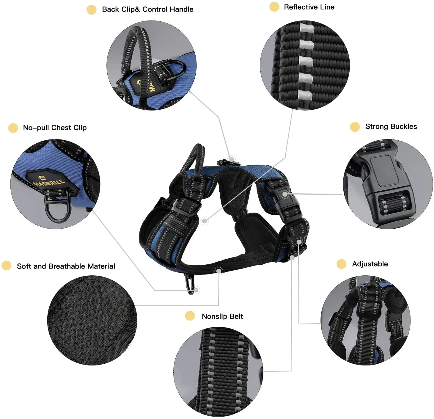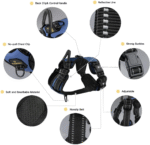 • Safety your features include Nylon webbing with reflective material for Good visibility at night and Sturdy handle for easy seat belt attachment while riding in your car.reflective Nylon webbing ensure good visibility for this high-end Dog Harness.