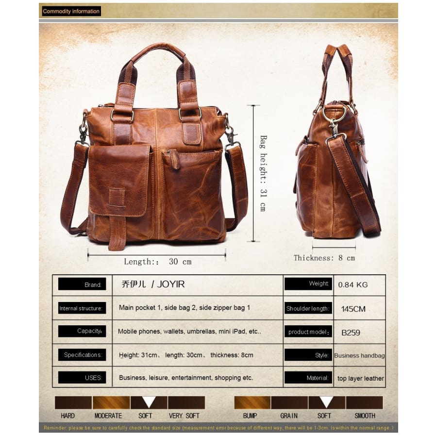 Main Material: Genuine Leather Genuine Leather Type: Cow LeatherMaterial Composition: genuine leather Exterior: Solid BagNumber of Handles/Straps: Single Lining Material: PolyesterItem Weight: 0.84kg Item Height: 30cmClosure Type: Zipper Handle/Strap Type: Soft HandleItem Width: 8cm Pattern Type: SolidSize: 12 inches Item Length: 31cm