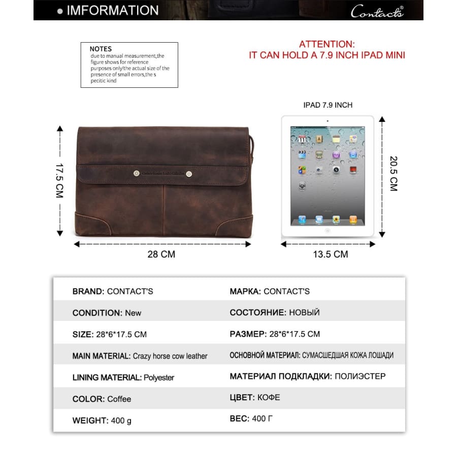 Main Material: Genuine Leather – Shape: Clutch